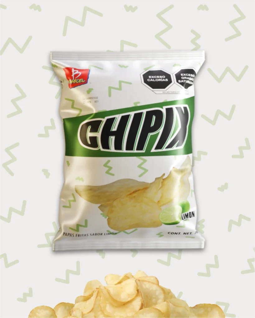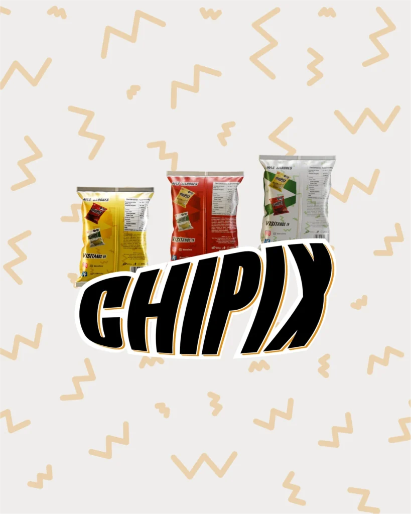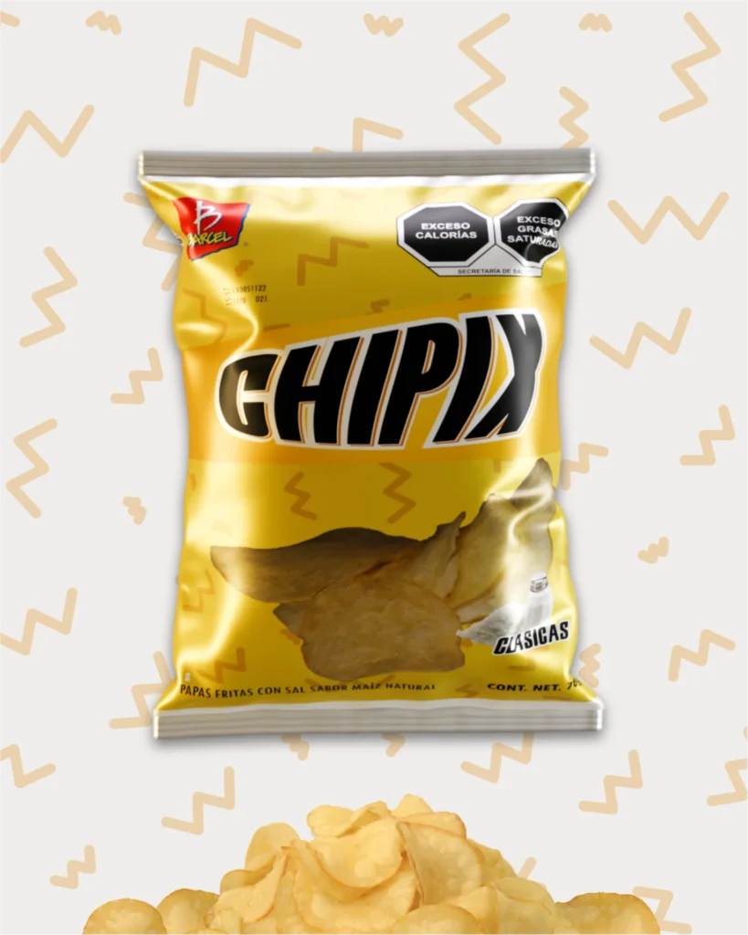 Chipix es un nuevo producto de papas diseñado para Barcel que busca captar un segmento de mercado específico dentro del portafolio de snacks. El nombre combina «Chip» (referencia directa al producto) con «ix» para aportar modernidad y familiaridad.